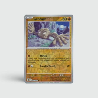 Geodude is een stevige Rock/Ground Pokémon met een herkenbaar klassiek ontwerp. Deze kaart brengt de robuuste Kanto-sfeer terug en vormt de perfecte start voor verzamelaars die de volledige Geodude-lijn willen vervolledigen.