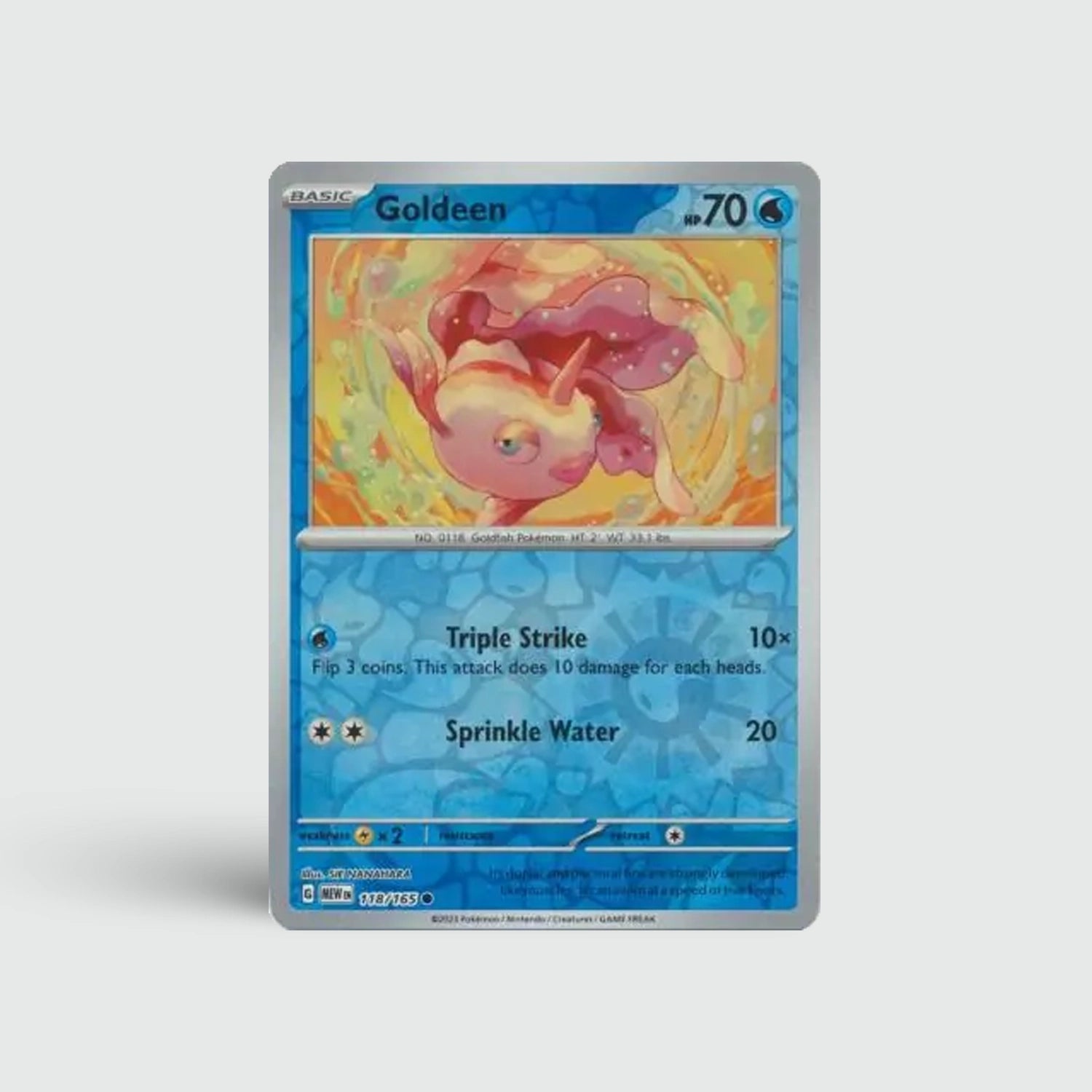 Goldeen brengt elegantie naar de 151-set. Een Water-type Pokémon met een tijdloze charme en een ideaal instapkaartje voor nieuwe verzamelaars.