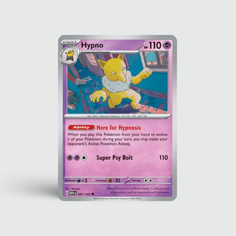 Hypno blijft een opvallende evolutiekaart met sterke Kanto-nostalgie. Ideaal voor wie de Psychic-lijn volledig wil verzamelen.