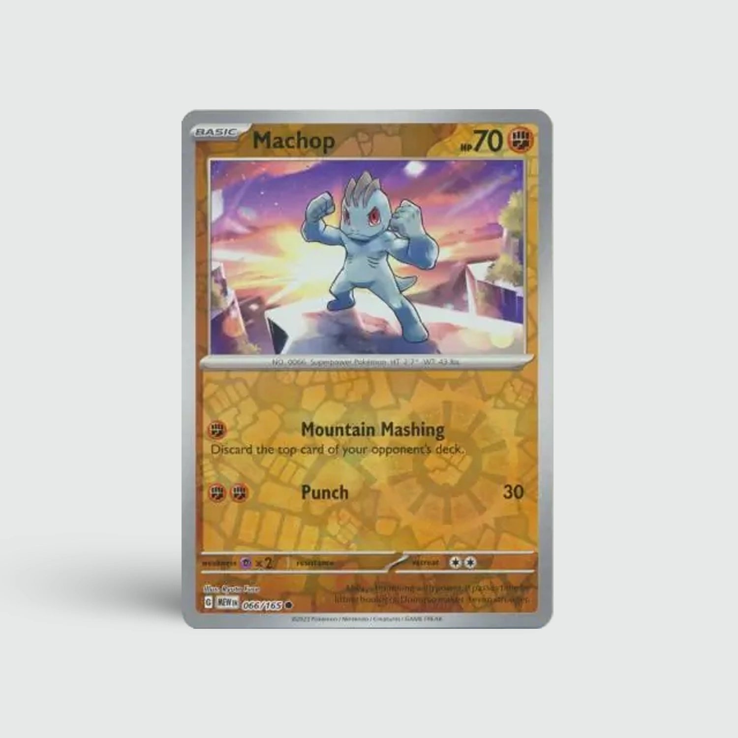 Machop is een klassieke Fighting-type Pokémon met een stoer en herkenbaar design. Deze kaart is ideaal voor verzamelaars die houden van de originele Kanto-vechters en hun volledige lijn willen opbouwen.