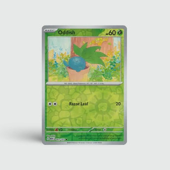 Oddish is een klassieke Grass/Poison Pokémon met een herkenbaar en speels ontwerp. Deze kaart brengt de charmante uitstraling van de Kanto-regio terug en vormt een mooie start voor verzamelaars die de volledige Oddish-lijn willen vervolledigen.