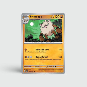 Primeape brengt de wilde en krachtige evolutie van Mankey naar een nieuw niveau. De kaart toont zijn agressieve stijl en is perfect voor fans van klassieke Fighting-types.