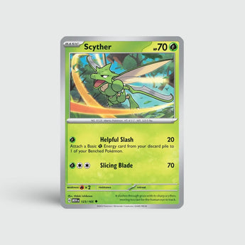 Scyther uit Scarlet & Violet: 151 brengt pure snelheid en scherpe precisie naar je collectie. Met zijn iconische bladen blijft het een favoriet onder fans en competitieve spelers. Een klassieker met blijvende waarde voor elke binder.