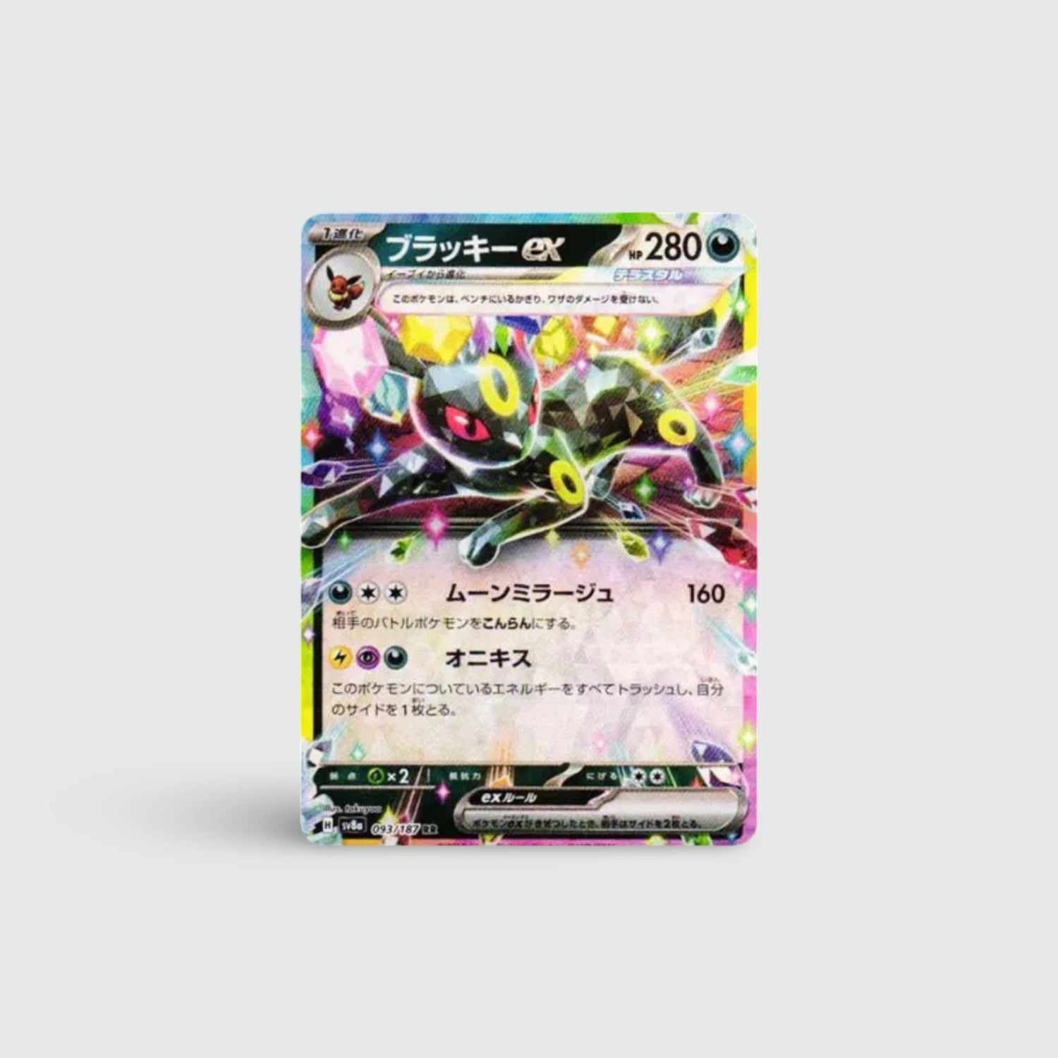 Deze Umbreon ex RR heeft een mysterieuze en stijlvolle uitstraling. Zeer geliefd bij Eeveelution-fans en verzamelaars van Dark-type Pokémon.