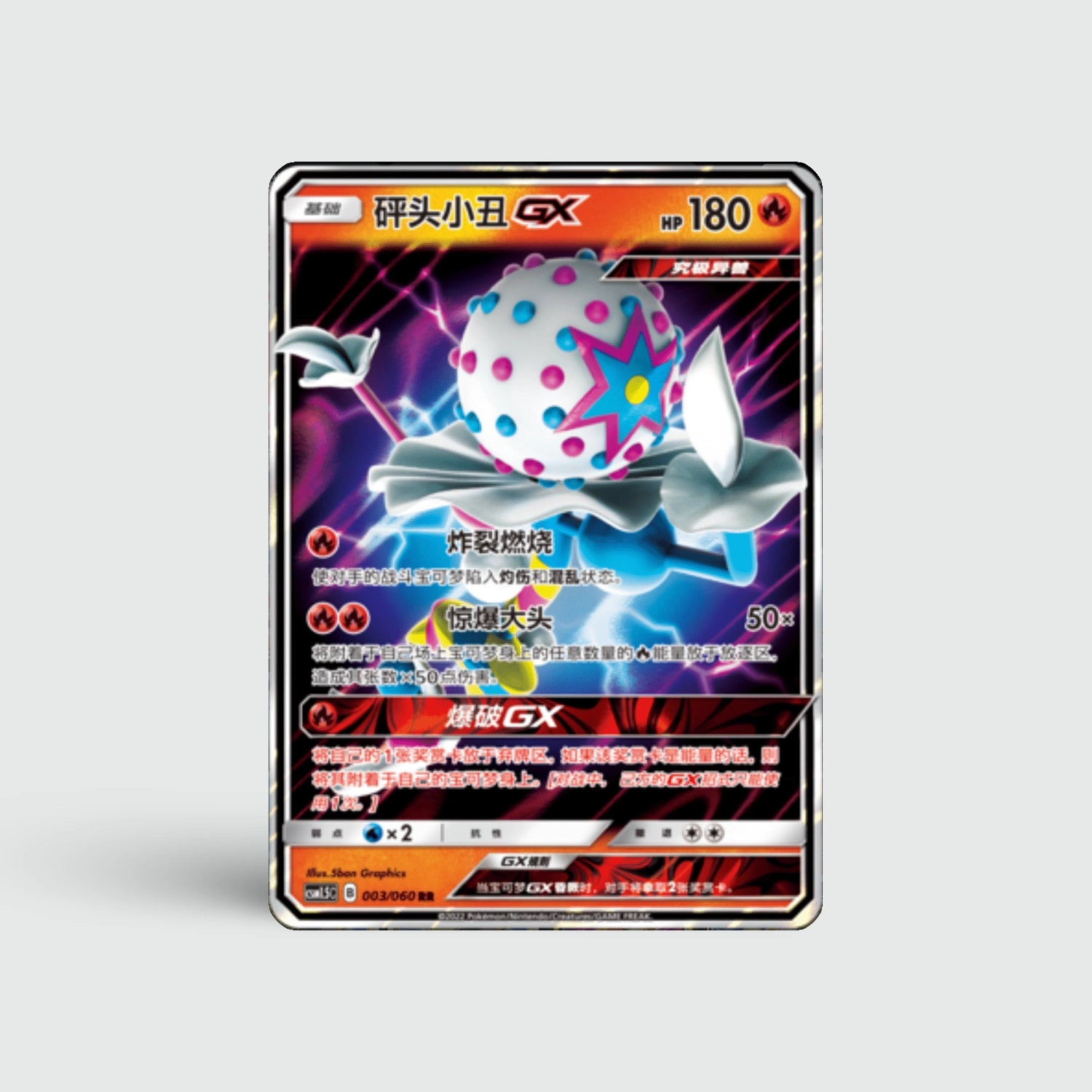 Blacephalon GX (CSM1.5C 003) is een Ultra Beast met explosieve kracht. Zijn opvallende design en vuurwerkachtige aanvallen maken hem een favoriet onder Fire-type fans.