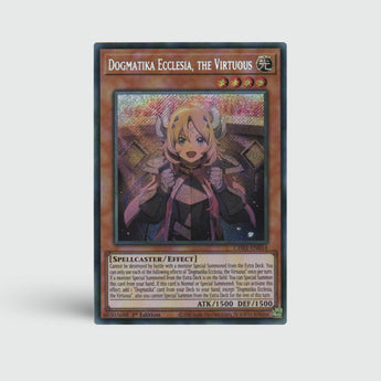 Dogmatika Ecclesia, the Virtuous is een kernmonster in Dogmatika- en Branded-strategieën. Ze activeert krachtige zoek- en summon-effecten en vormt een elegante, stabiele opener voor controlgerichte spelers.