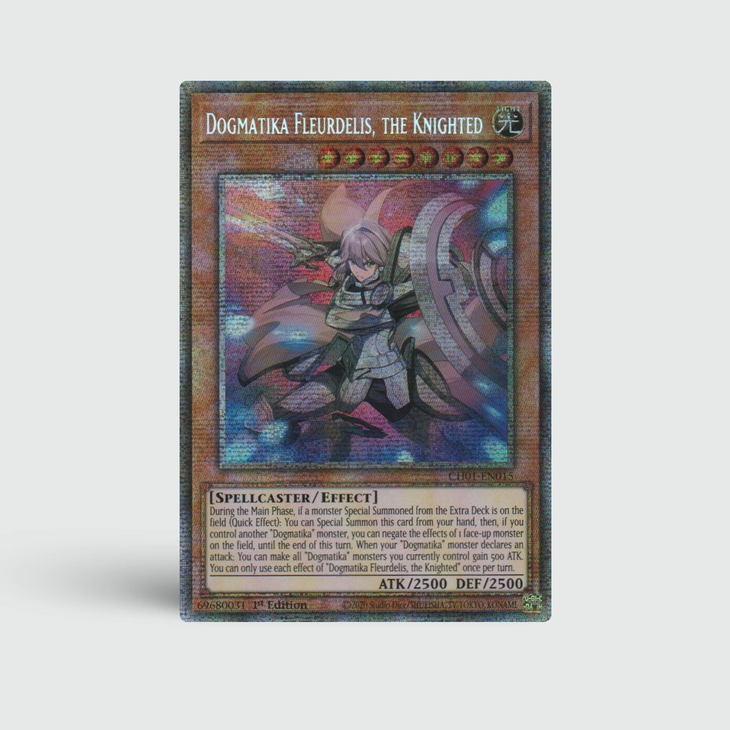 Dogmatika Fleurdelis, the Knighted is een majestueuze finisher die niet alleen hoge aanval biedt, maar ook een sterke negate wanneer Dogmatika-monsters aanwezig zijn. Perfect als late-game powerplay.