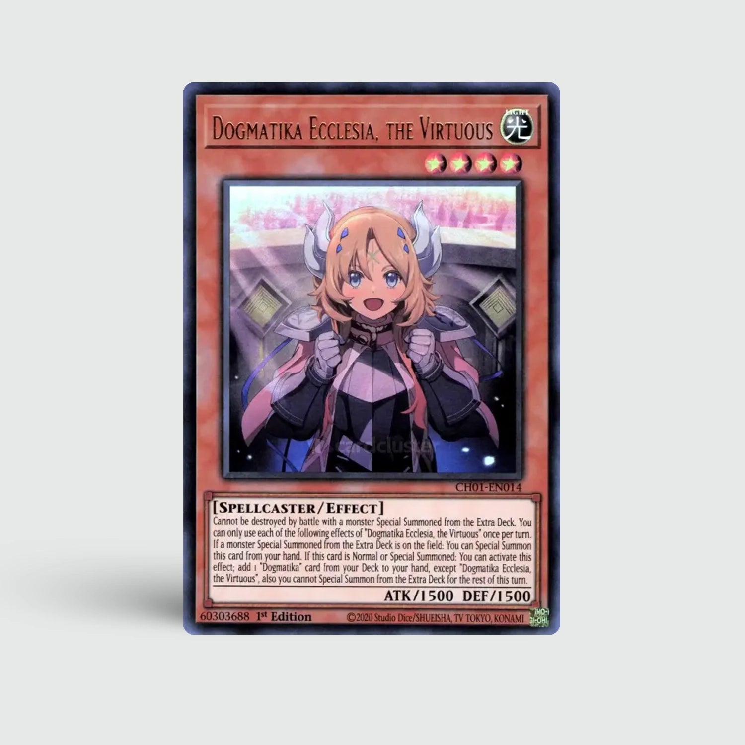 Dogmatika Ecclesia, the Virtuous straalt mystieke elegantie uit. Een cruciale kaart in Dogmatika- en Albaz-strategieën dankzij haar vermogen om sterke monsters op te roepen.
