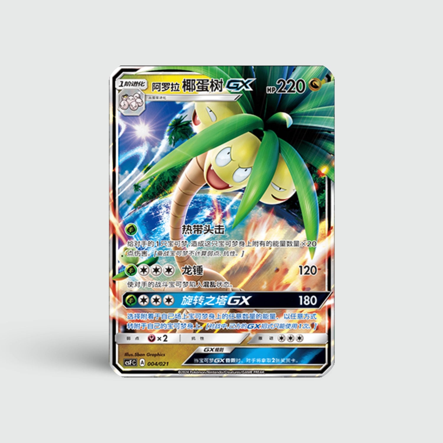 Alolan Exeggutor GX (CSFC 004) takes sunny energy to the next level. A colorful GX card that combines strength and humor.