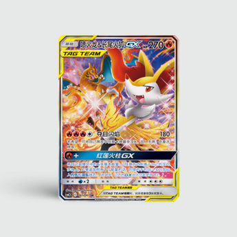 Charizard & Braixen GX (CSM2.5C ​​065) appears here in an alternate art style with added flair. The intense colors and fiery background give the card a premium look.