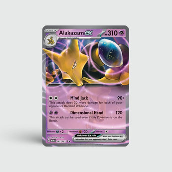 Alakazam ex combineert premium artwork met sterke EX-mechanieken. Met zijn indrukwekkende Psychic-kracht is dit een absolute topper binnen de 151-set en een eyecatcher voor elke collectie.