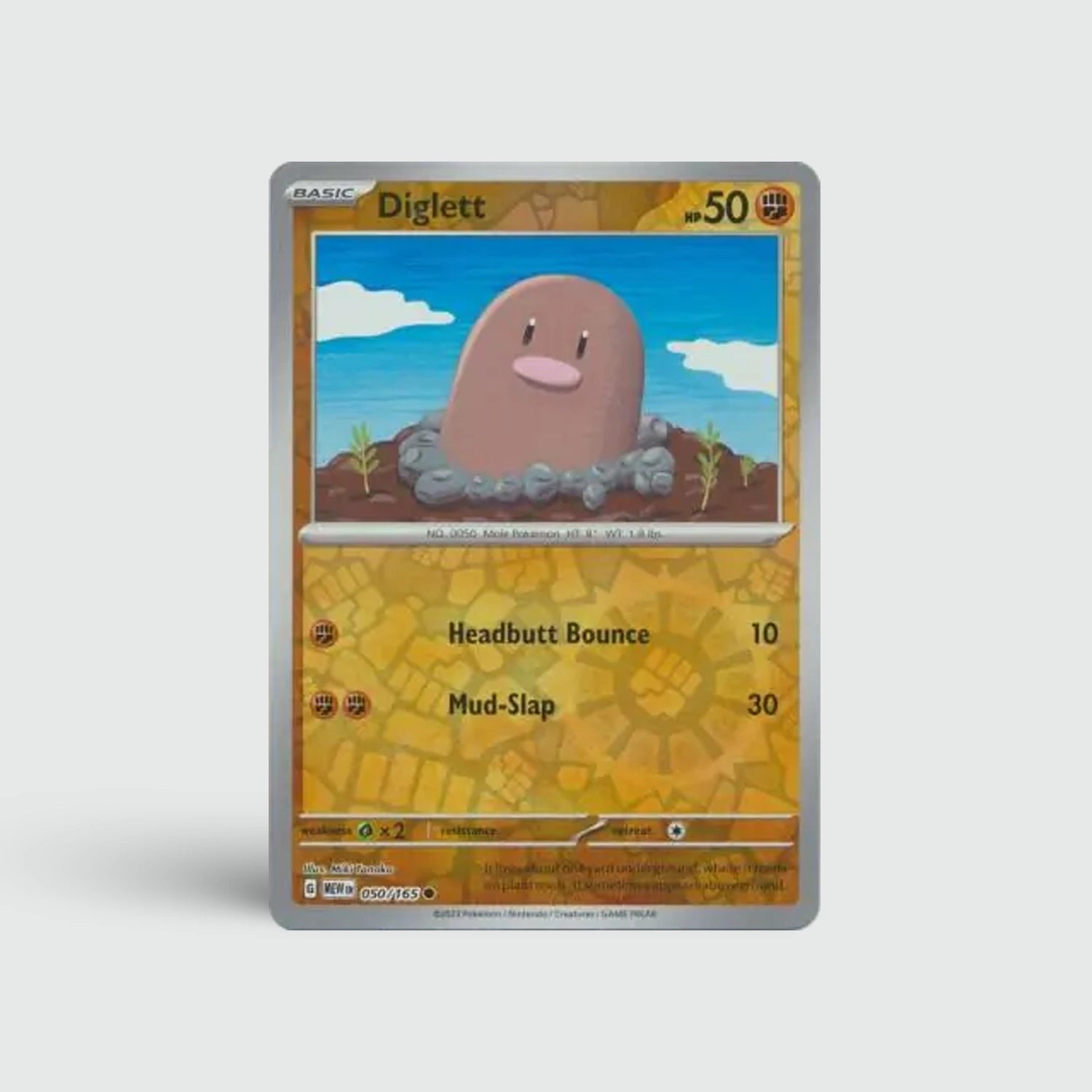 Diglett is een klassieke Ground-type Pokémon met een simpel maar iconisch ontwerp. Een vaste waarde voor fans van de originele Kanto-routes en een leuke aanvulling voor elke 151-verzameling.