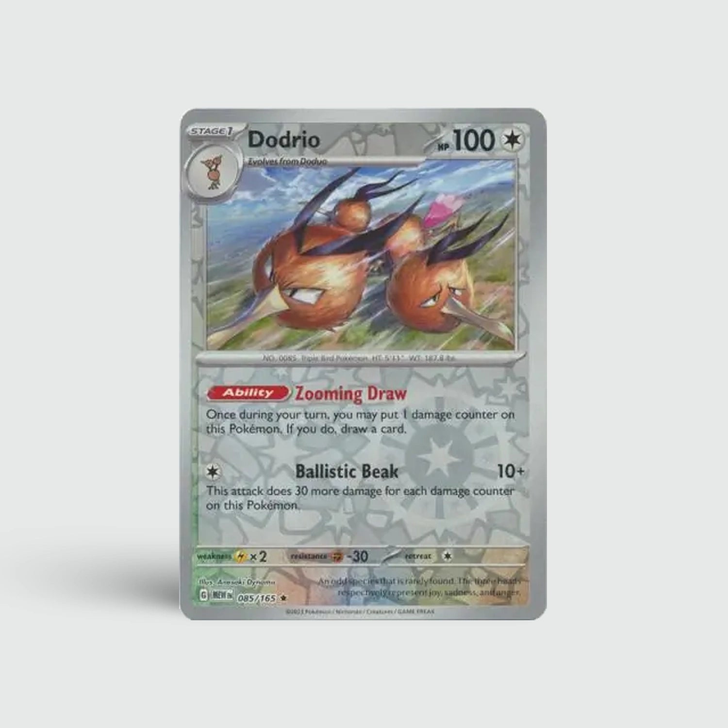 Dodrio bouwt verder op Doduo met een krachtigere, drievoudige evolutie. Deze kaart heeft een dynamische uitstraling en is perfect voor fans van de originele vogel-lijnen uit Kanto.