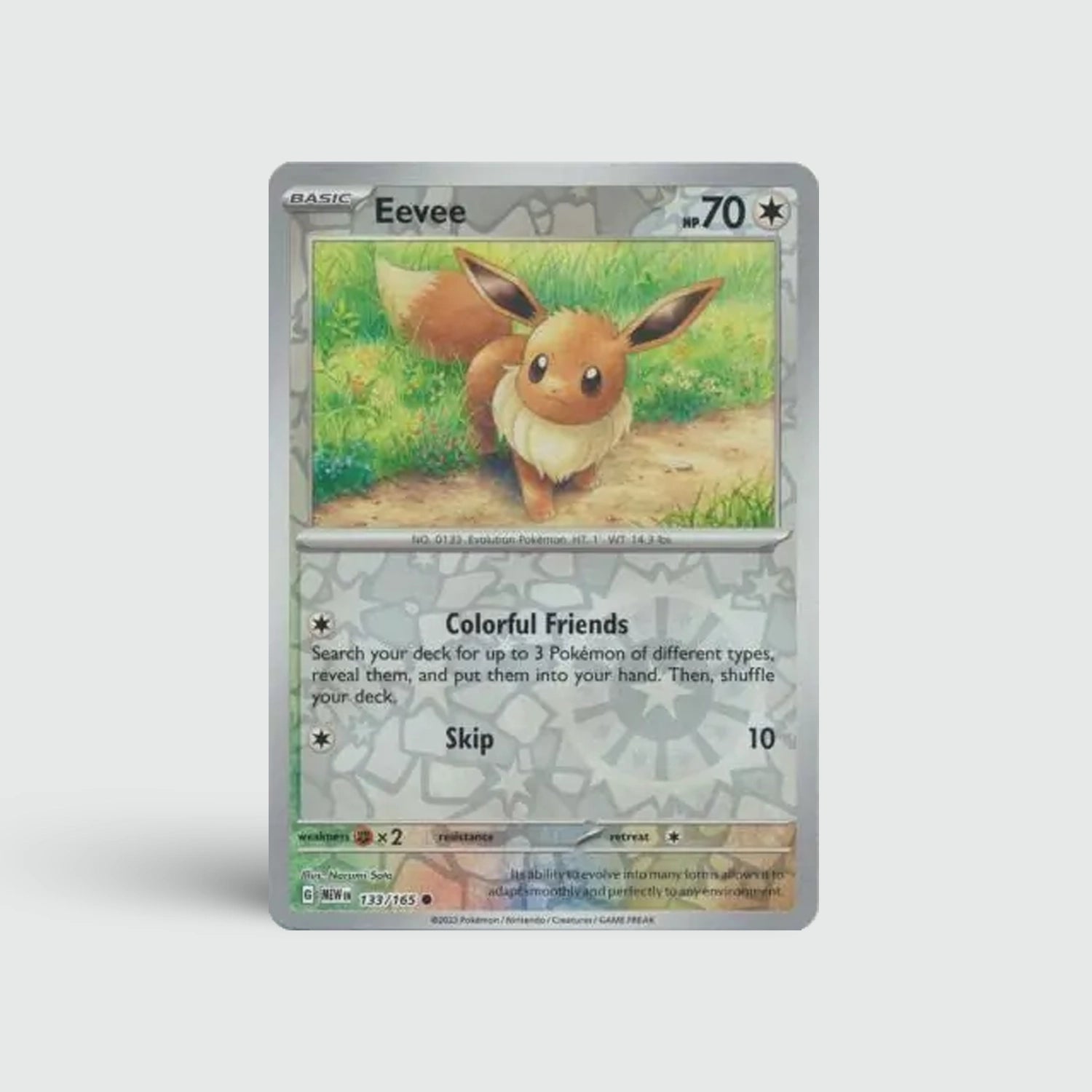 Eevee blijft één van de meest veelzijdige en populaire Pokémon. De 151-uitgave is ideaal voor verzamelaars die alle evoluties willen volgen. Een tijdloze kaart met altijd hoge vraag.