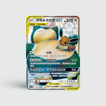 Eevee & Snorlax GX (CSM2cC 170) toont het perfecte evenwicht tussen schattigheid en kracht. Hun teamwork en charmante design maken dit duo onweerstaanbaar.