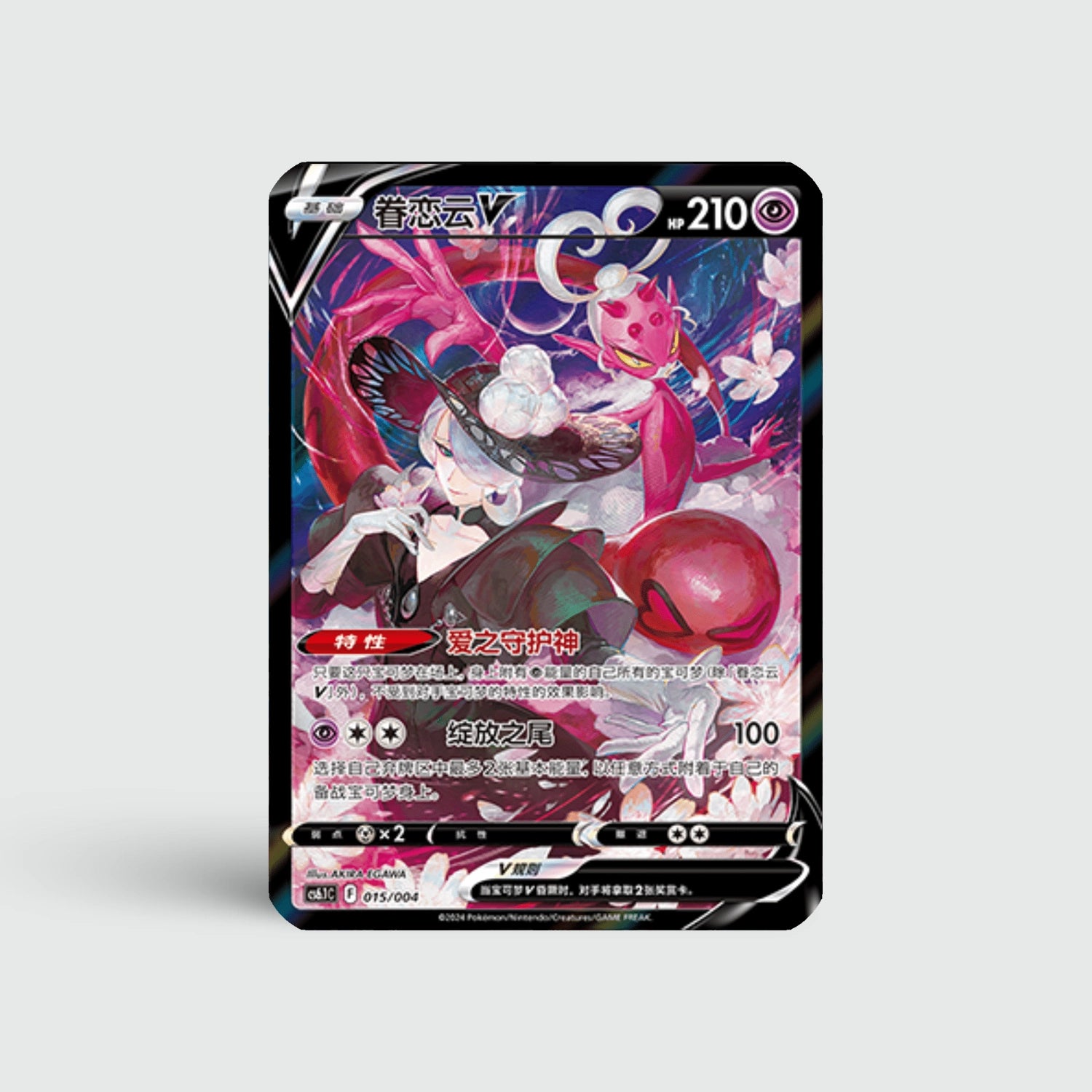 Enamorus V (CS6.1C 015) brengt schoonheid en mystiek samen. Een charmante Psychic/Flying-type kaart met prachtig roze-paars artwork.