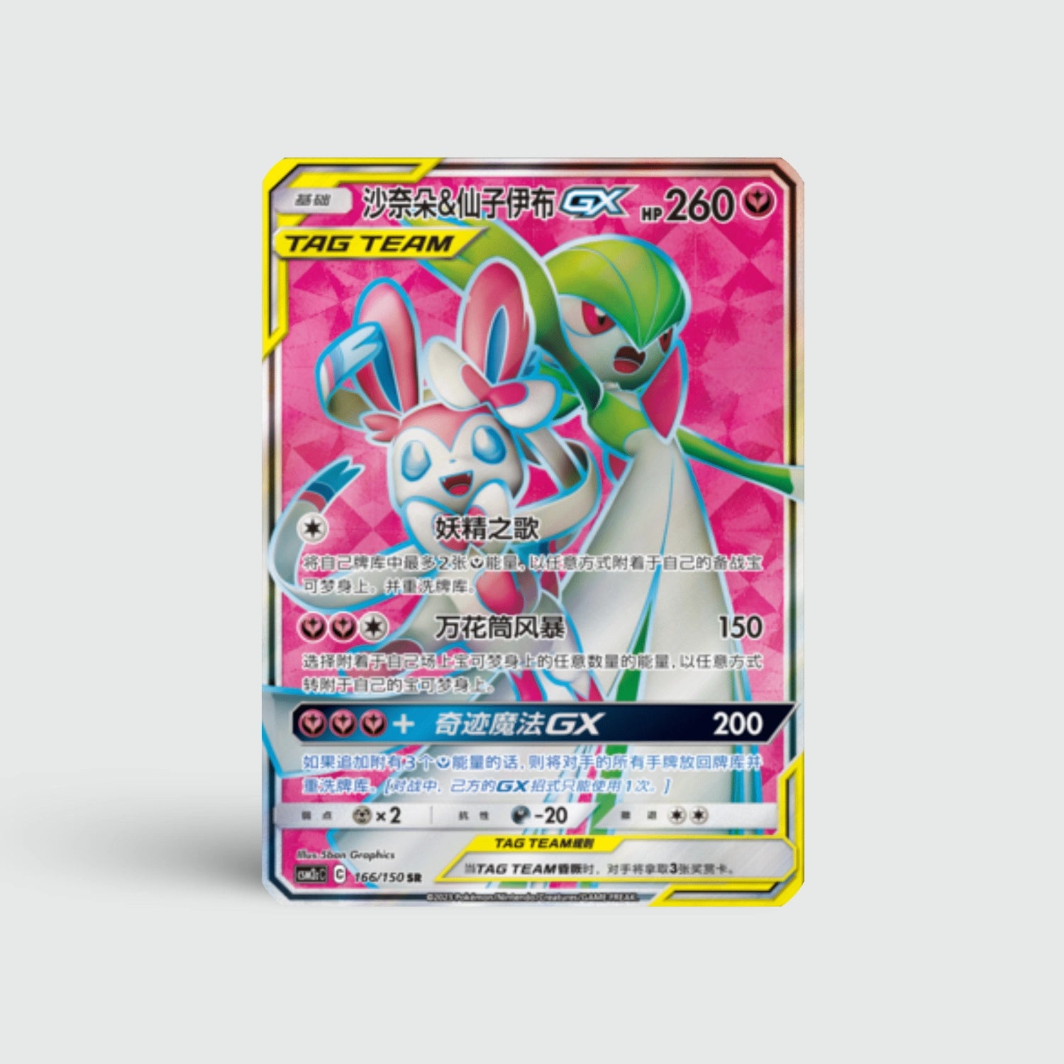 Gardevoir & Sylveon GX (CSM2cC 166) straalt elegantie en harmonie uit. Dit Fairy-type duo combineert gratie, strategie en prachtig artwork. Een favoriet bij verzamelaars van stijlvolle kaarten.