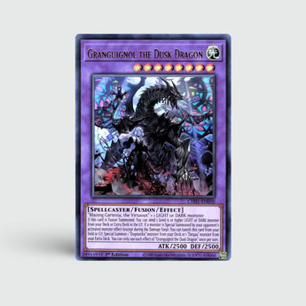 Granguignol the Dusk Dragon is een elegante, strategische uitbreiding van de Fusion-lijn. Hij stuurt monsters vanuit je deck naar de graveyard om grote plays voor te bereiden.