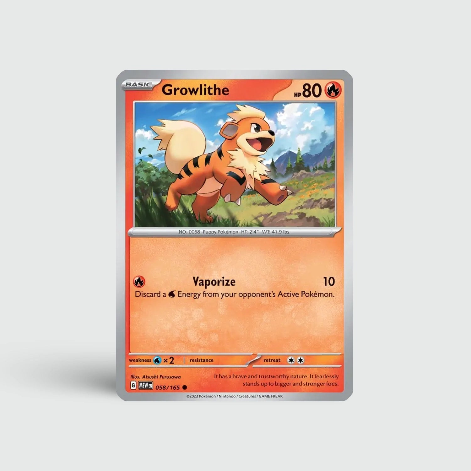 Growlithe is een trouwe en geliefde Fire-type Pokémon met een warme uitstraling. Deze kaart is bijzonder populair onder verzamelaars dankzij zijn iconische en vriendelijke design.