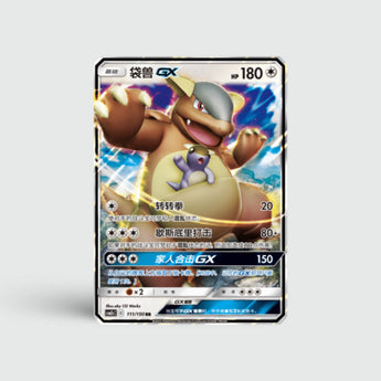 Kangaskhan GX (CSM2cC 111) toont moederlijke kracht en bescherming. Deze Normal-type kaart combineert zorgzaamheid met indrukwekkende vechtlust.