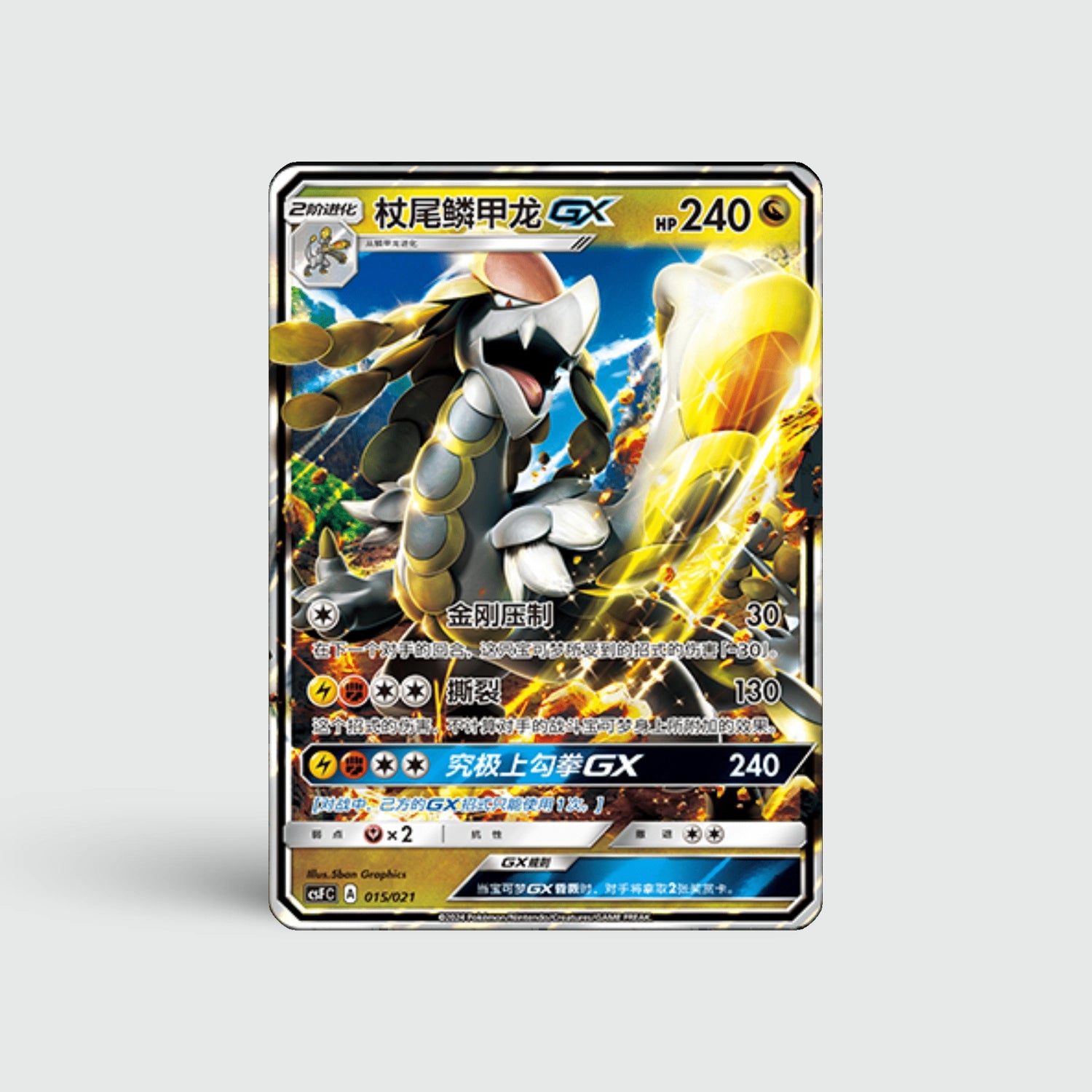 Kommo-o GX (CSFC 015) bouwt voort op zijn robuuste reputatie. Een GX-kaart met dynamische energie en indrukwekkende illustratie.