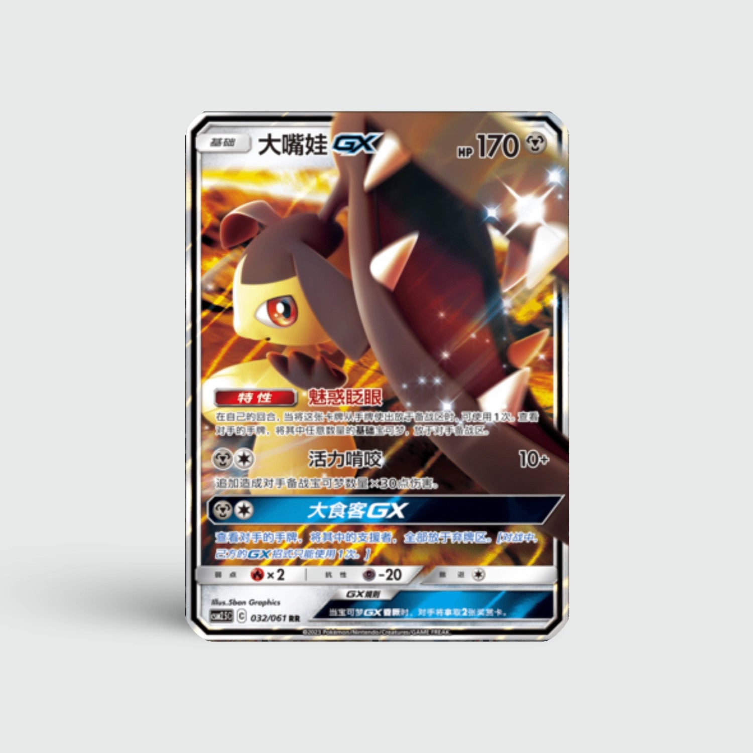 Mawile GX (CSM2.5C 032) combineert charme en gevaar in één. De sierlijke maar dreigende uitstraling maakt dit een unieke kaart met karakter.