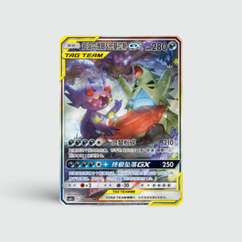 Mega Sableye & Tyranitar GX (CSM2cC 160) verschijnt in een alternate art-variant met schitterende details. Een echte must-have voor verzamelaars van Dark-type duo’s.