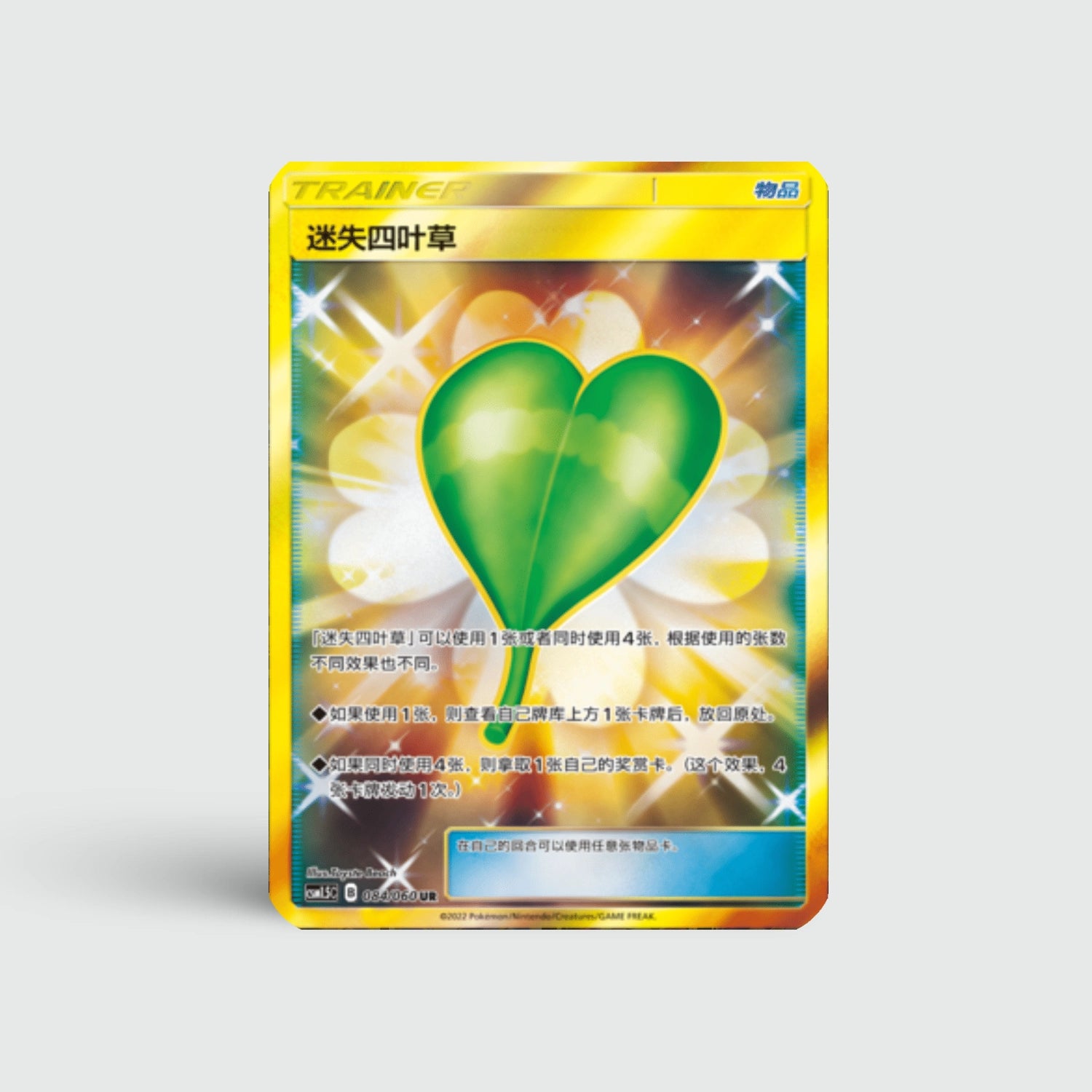 Missing Clover (CSM1.5C 084) biedt unieke strategische voordelen. Een interessante Trainer-kaart voor spelers die graag risico nemen.