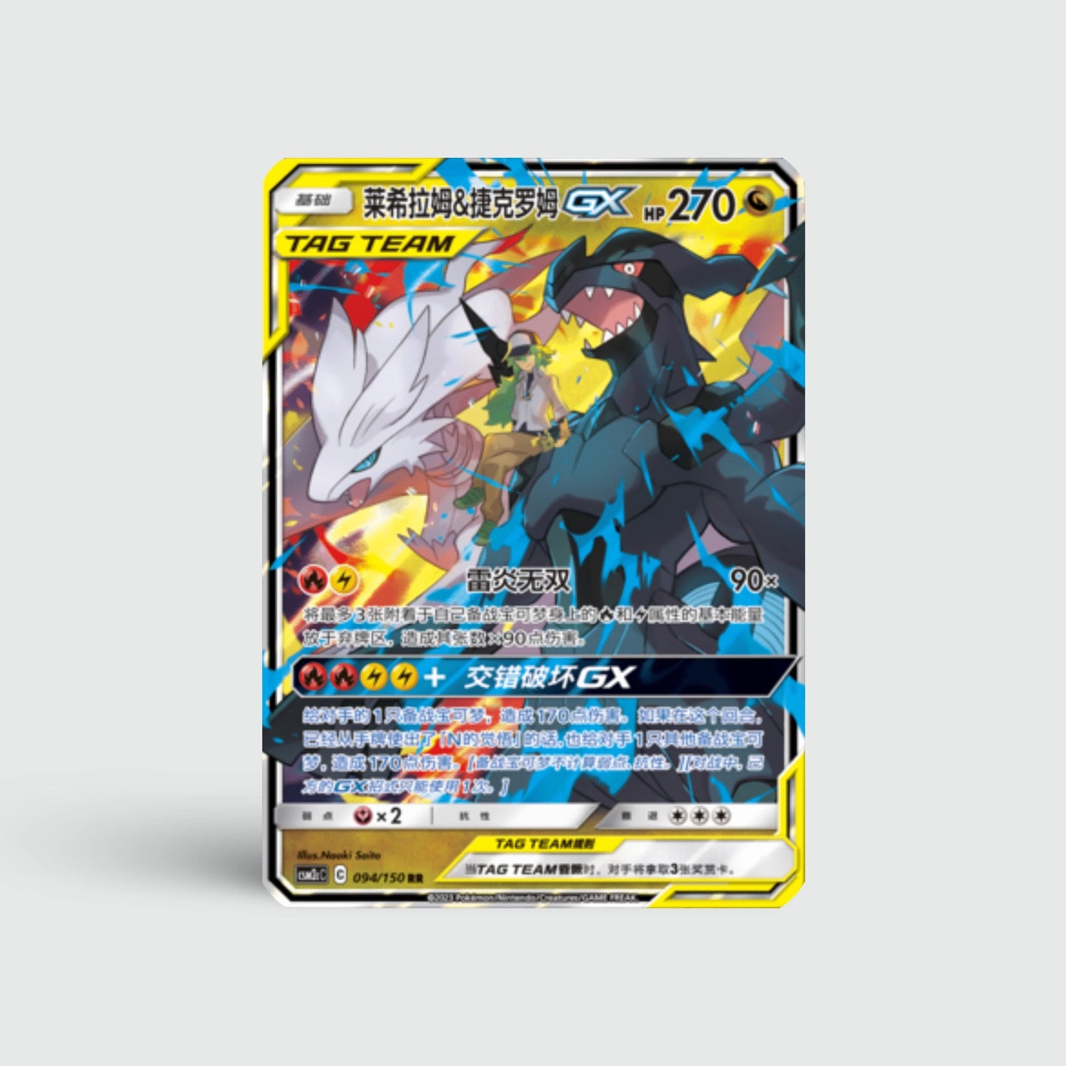 Reshiram & Zekrom GX (CSM2cC 094) verenigt vuur en elektriciteit in één explosieve kaart. Hun tegenstrijdige krachten komen samen in een verbluffend krachtig duo.