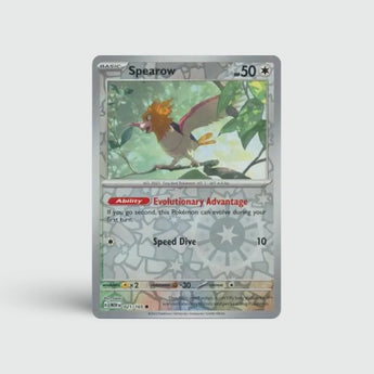 Spearow is een klassieke Flying-type Pokémon met een pittig karakter. Deze kaart uit Scarlet & Violet: 151 brengt de nostalgische Kanto-sfeer tot leven en is ideaal voor verzamelaars die de originele vogel-lijn compleet willen maken.