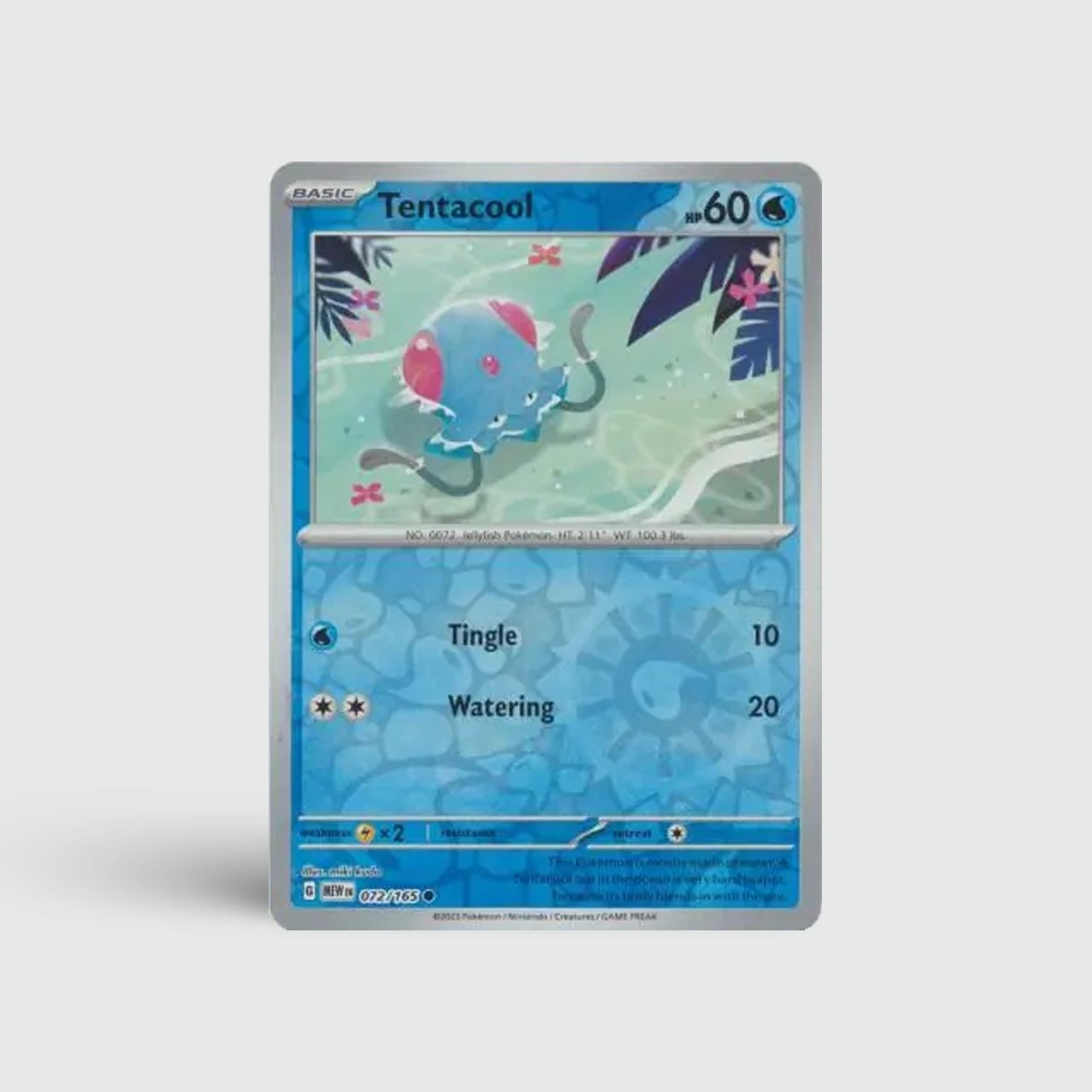 Tentacool is een Water/Poison Pokémon met een herkenbaar zeedieren-design. Deze kaart is ideaal voor verzamelaars die de kust- en oceaan-thema’s uit Kanto waarderen.