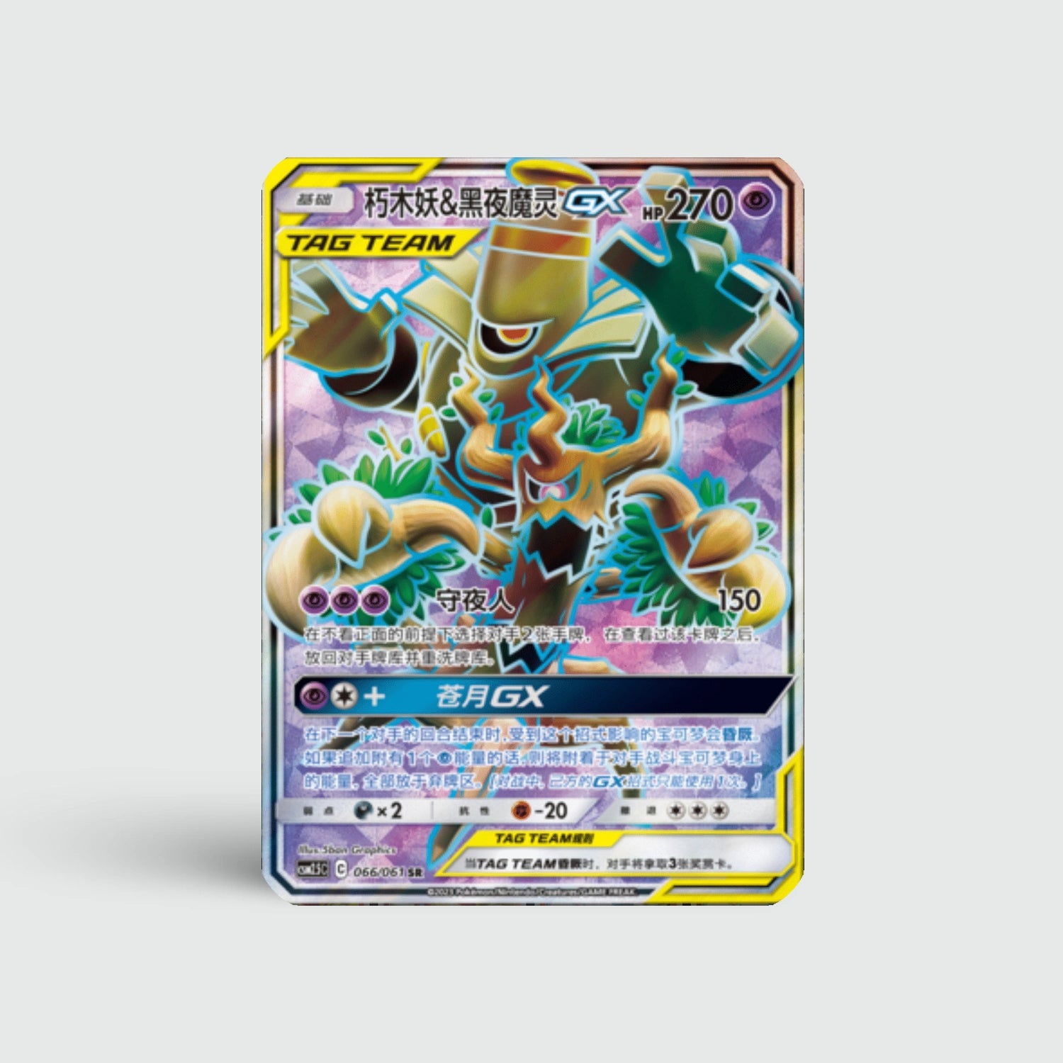 Trevenant & Dusknoir GX (CSM2.5C 066) is een spookachtig duo met sinistere uitstraling. Hun krachtige aanvallen en mystiek artwork maken dit een opvallende GX-kaart.