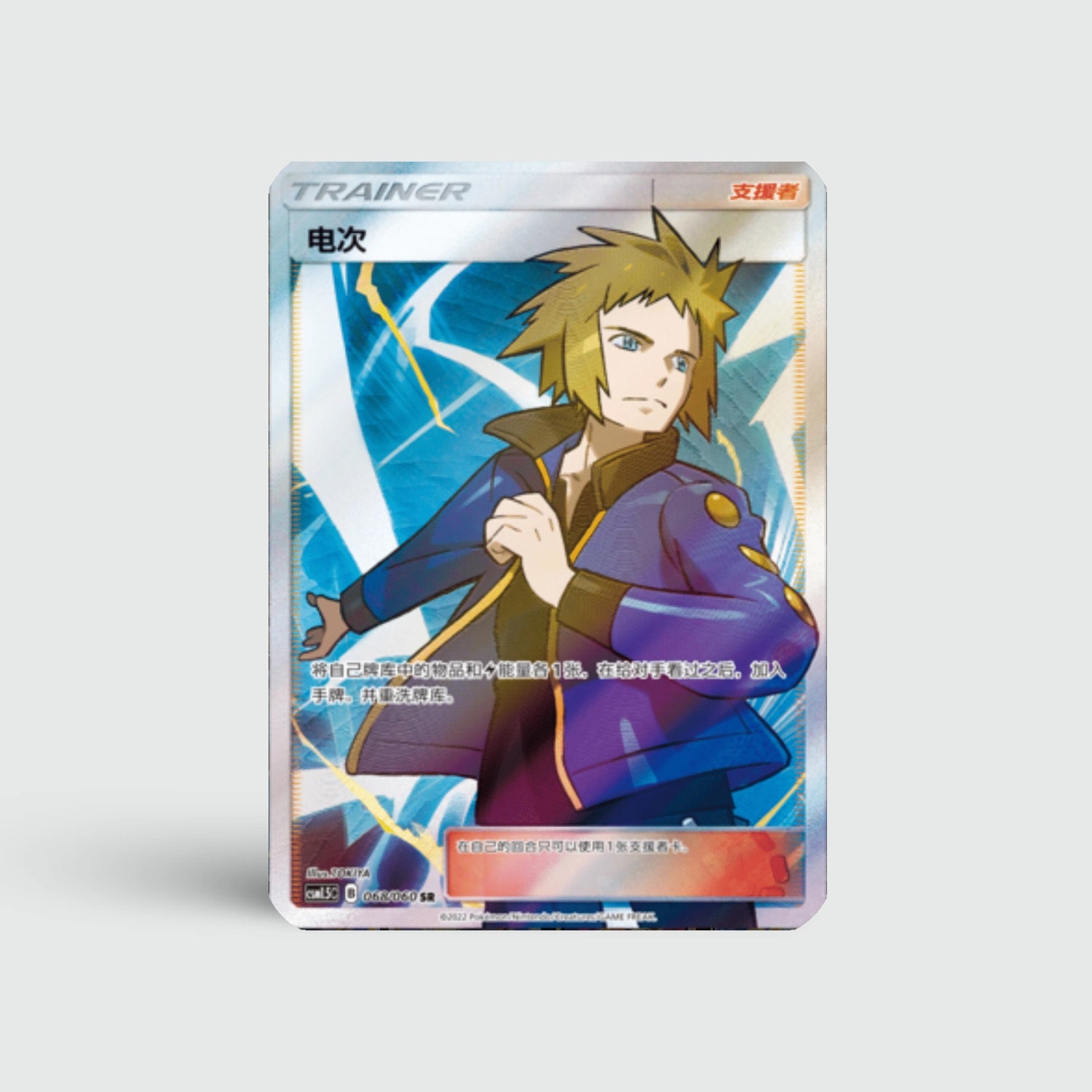 Volkner (CSM1.5C 068) is een Supporter-kaart geïnspireerd op de Electric-type Gym Leader. Een kalm en tactisch ontwerp dat elke collectie versterkt.
