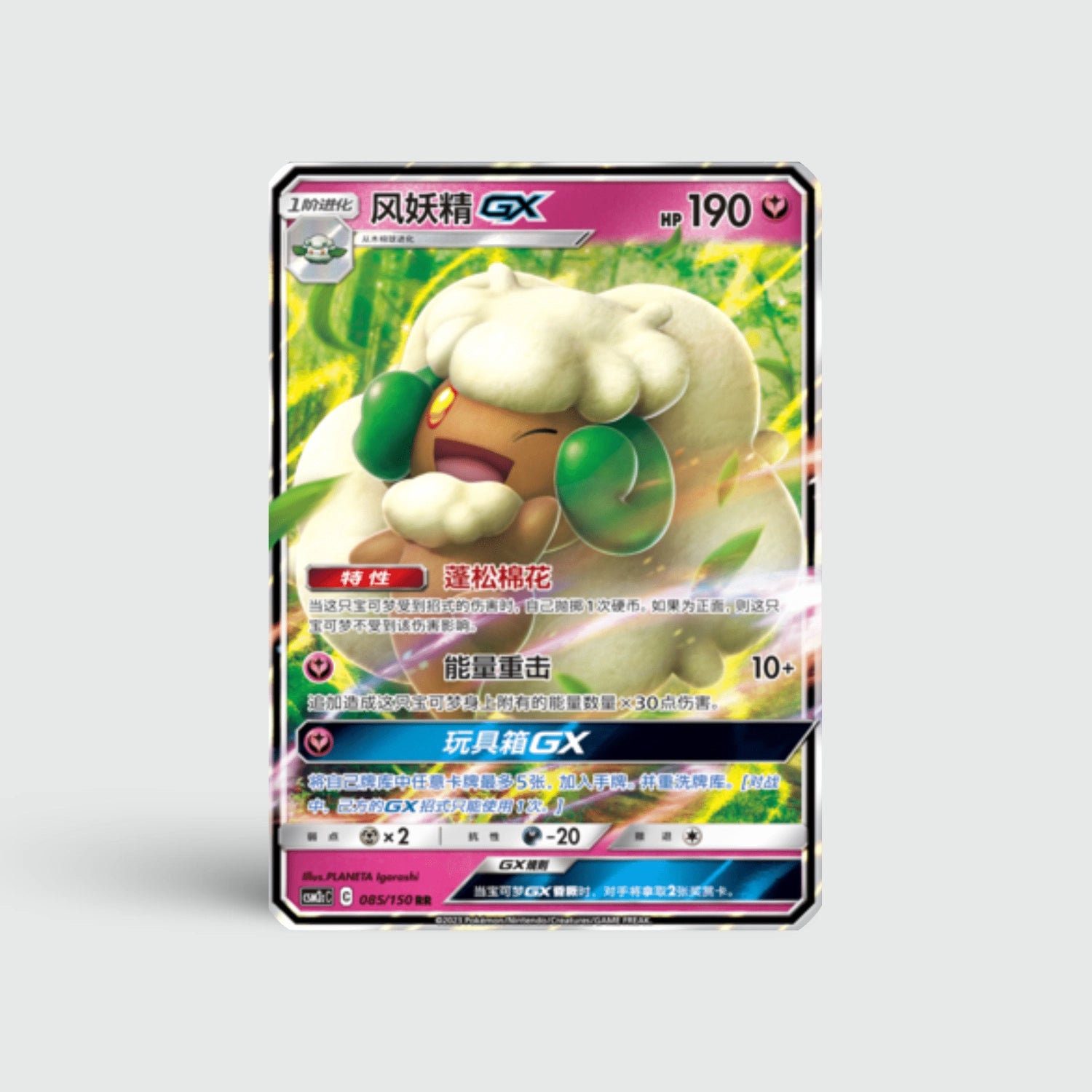 Whimsicott GX (CSM2cC 085) is een charmante Fairy-type Pokémon met speels design. Zijn vrolijke uitstraling en slimme aanvallen maken hem een subtiele favoriet onder verzamelaars.
